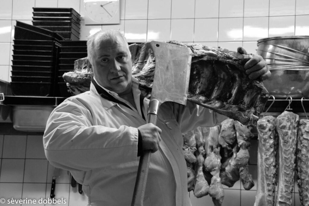 In mijn dorp wilde de beenhouwer een paar fotos voor in de etalage. Uit de reportage werden de volgende 3 foto’s weerhouden. Deze heb ik dan op groot formaat laten afdrukken en inkaderen. Heb je interesse om jouw zaak aan te kleden met jouw foto’s ? Boek dan snel een afspraak met fotograaf@upakee.be.