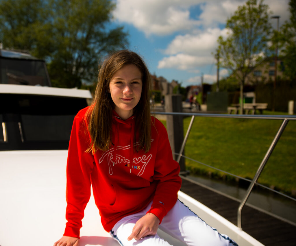 Deze lieve meid wilde een paar foto’s voor haar communiekaartjes. Locatie is de Leie in St-Martens Latem en het kasteel van Bachte Maria Leerne.